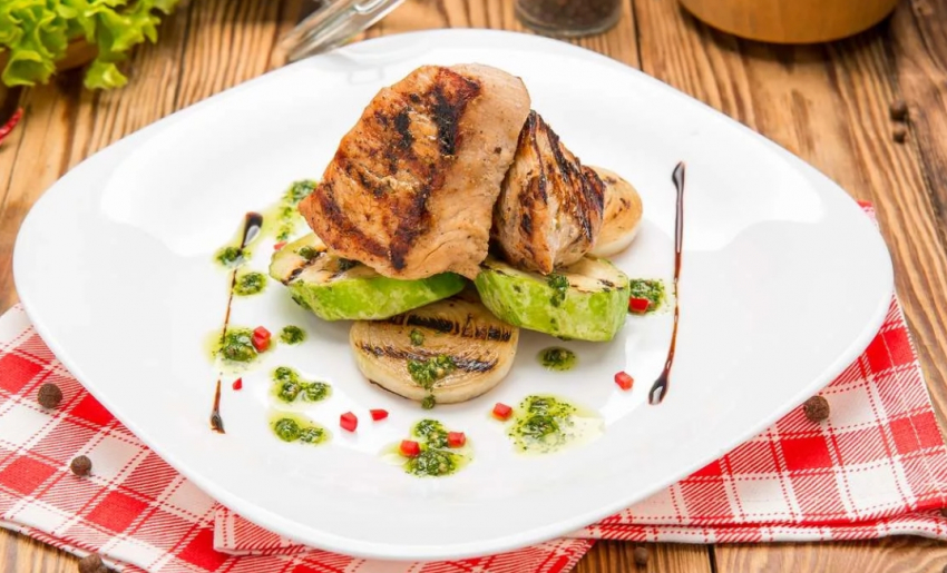 - Готовые стейки из индюшатины подают горячими с овощными салатами и диетическими гарнирами. К примеру, блюдо гармонично дополняет салат из айсберга.