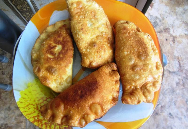 - Складываем и соединяем края, защипывая вилкой. Прожариваем чебуреки в растительном масле и подаем горячими на стол. Приятного аппетита!