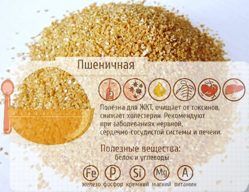 А ведь еще не весь список полезных элементов. Пшеничная крупа, отличительно от муки, содержит очень много клетчатки, что является незаменимым предметом для здоровья кишечника. Эта клетчатка выводит из человека токсины и фрагменты лекарственных элементов, она помогает управиться с запорами и благоприятствует похудению.