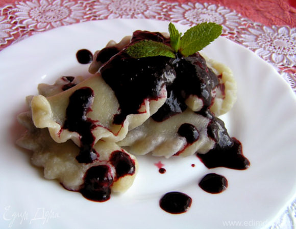 При подаче к столу можно полить вареники сметаной, мёдом или вареньем, а можно просто присыпать их сахаром.