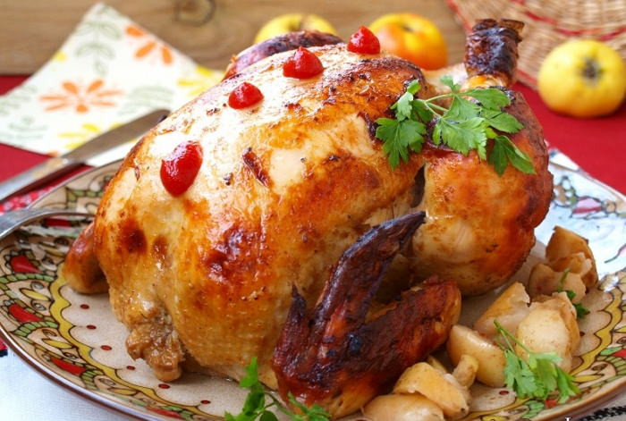 Запеченная курица на Новый год – самое популярное среди россиян блюдо. Каждая уважающая себя хозяйка умеет приготовить курицу на новогодний стол. Но не каждая хозяйка знает, что существует не один, а множество способов пожарить курицу целиком.