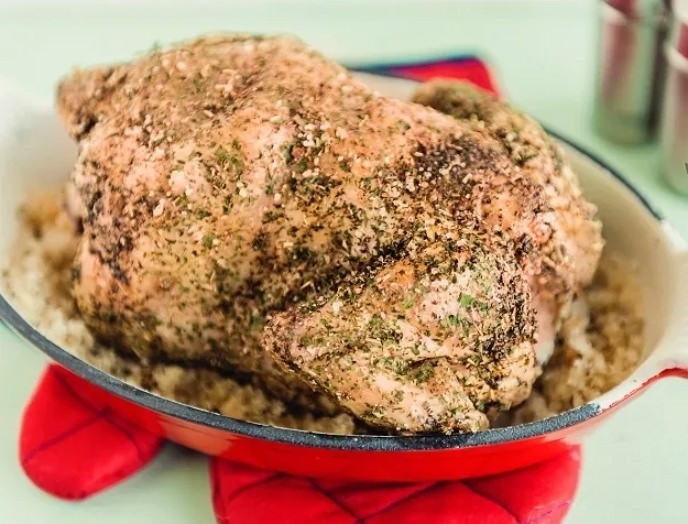 Многие повара используют смесь сухих и молотых специй, натирая ими курицу внутри и запихивая под кожицу. Заметьте, не натирая снаружи! Под кожицей сухие травы не будут гореть. Кроме того, если при подаче уберете с мяса кожицу, курица все равно останется ароматной. Как вариант, попробуйте микс из порошка чили, тмина и шалфея. Или же смешайте в равных частях кориандр, тмин, куркуму или кардамон.