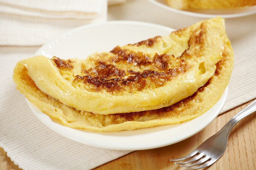 - Поставьте чугунную или антипригарную сковородку на плиту, распустите сливочное масло (не дайте ему стать коричневого цвета). Покрутите сковородку, чтоб масло равномерно распределилось по дну и бокам. Слегка взбейте яйца вилкой и сразу же вылейте их на сковородку.