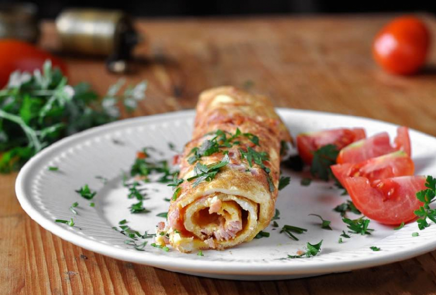 - Сыр намазать на фриттаты, свернуть их в трубочки.