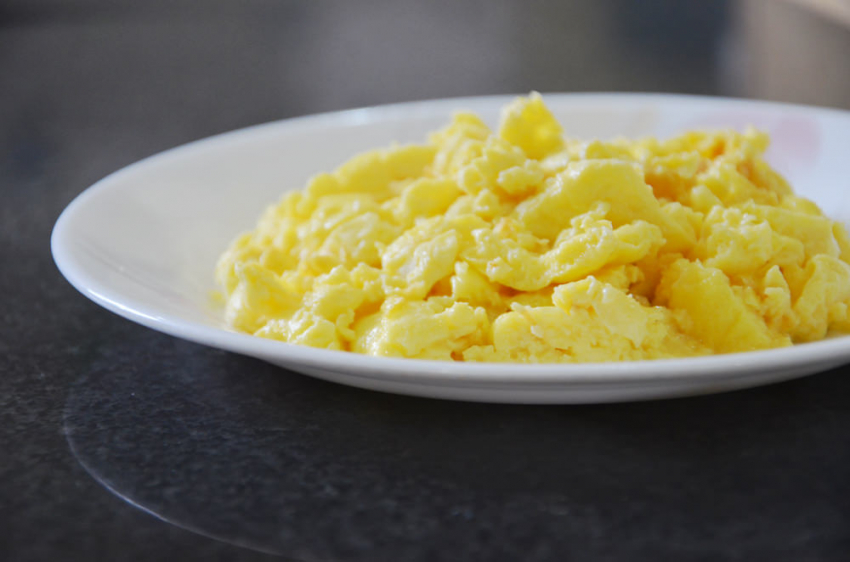 Вот и все – идеальная яичница-болтунья готова. Можно подавать из расчета 2 яйца на 1 порцию. Солим и перчим уже непосредственно на тарелке.