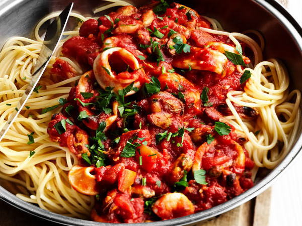 Паста с морепродуктами в томатном соусе