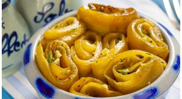 К концу маринования блюдо приобретает пикантный вкус и нежнейшую консистенцию, да еще и имеет достаточно оригинальный вид – огурчики получаются чуть прозрачными, очень красивые рельефные рулетики. Можно наколоть на пики для канапе, можно брать вилкой или сервировочными щипцами.