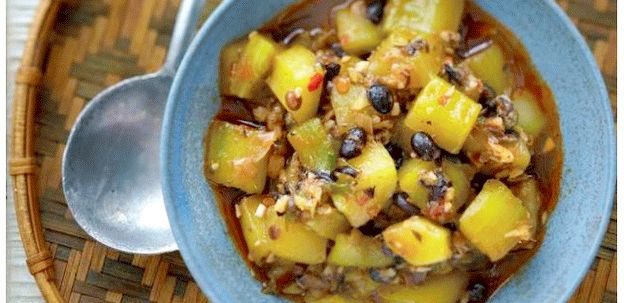 В сковороде разогрейте оливковое масло на сильном огне. Добавьте чеснок, фасоль, имбирь и зелёный лук. Жарьте примерно 30 секунд. Засыпьте огурцы с сахаром, солью и перцем, полейте соусом и готовьте ещё 30 секунд. Залейте водой и оставьте на огне ещё на 3–4 минуты. Добавьте оставшееся масло и подавайте к столу.