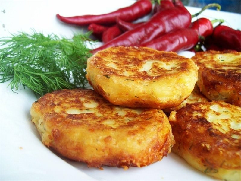 - На разогретую сковороду с маслом выложить ложкой массу и жарить с двух сторон до румяной корочки.