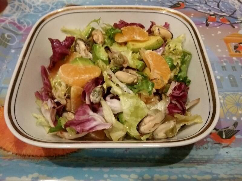 Салат из мидий с мандаринами