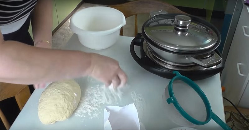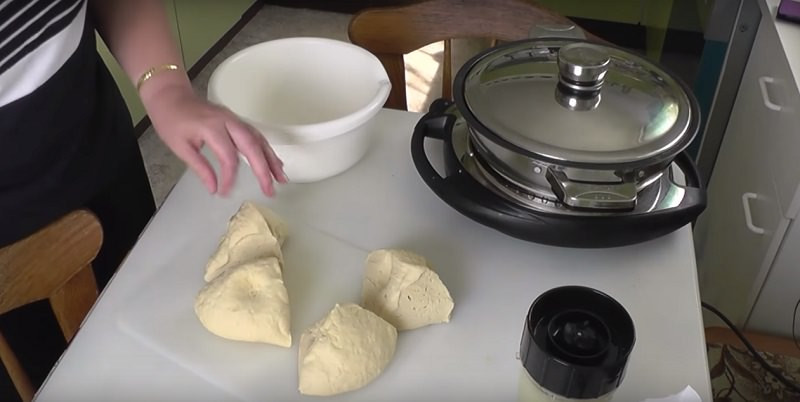 - Готовое тесто раздели на 4 части и сформируй круглые лепешки.
