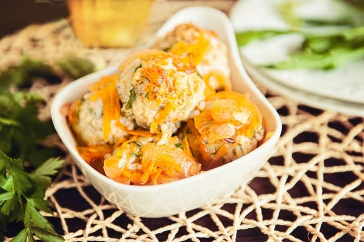 В чашу налить воды, поместить паровую пластину, выложить на нее тефтели. Выбрать кнопкой «МЕНЮ/ВЫБОР» программу «ПАРОВАРКА», установить время 20 минут и 2 уровень температуры. Нажать кнопку «СТАРТ».