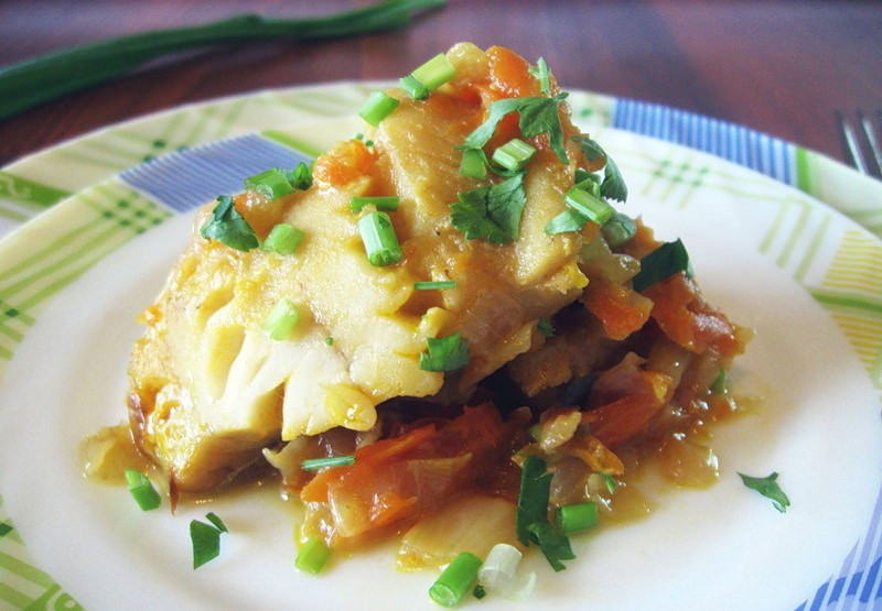 - Подавать яство следует с приготовленными и напитавшимися соком рыбы овощами.