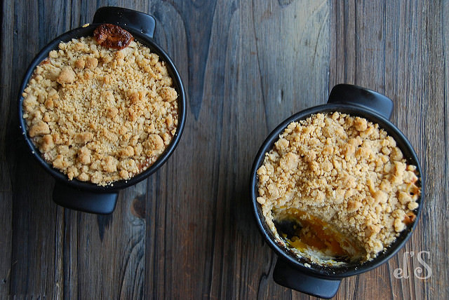 Для посыпки смешайте все ингредиенты вместе и посыпьте запеканку. Выпекать в течение 25 мин.