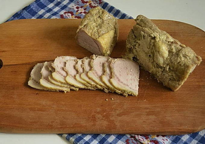 Филе свинины покрывают соевым соусом, чесночным и горчичным маринадом и отправляют в холодильник на 12 часов. По истечении необходимого времени мясо перекладывают на фольгу, заливают растительным маслом, заворачивают и готовят 80 минут. Получается вкусное и нежное мясо.Ингредиенты: