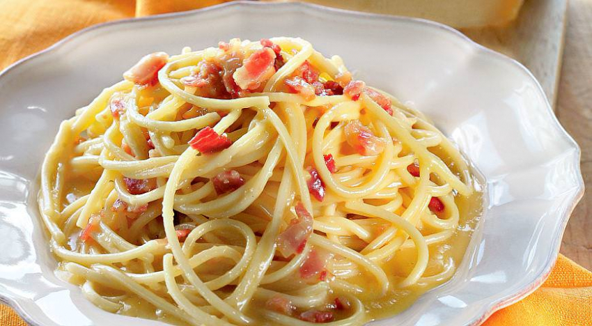 - Еще один секрет – в соусе для пасты карбонара. На каждые 100 г сухих спагетти нужно заготовить по одному желтку. Еще для соуса карбонара понадобится сыр – пармезан, пекорино или оба сорта сыра в равных пропорциях – всего 100 г на 4 порции.