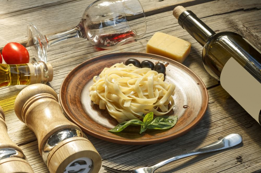К соусу добавьте орегано и базилик, перемешайте. Также натрите на мелкой терке сыр “Пармезан”. Смешайте пасту с соусом и подавайте к столу. Сверху присыпьте тертым сыром.