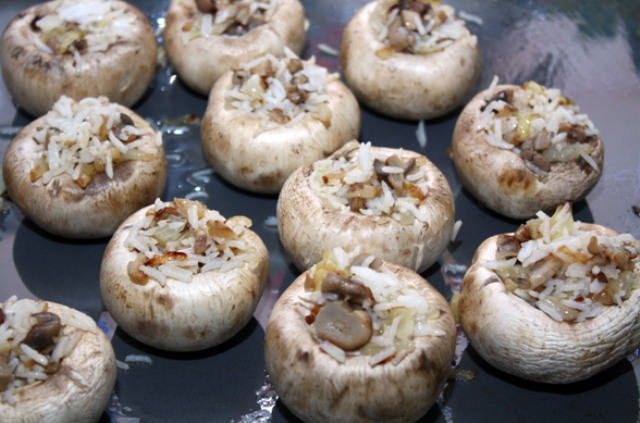 Начинить шляпки начинкой как можно плотнее и запечь в духовке при 190 градусах около 20 минут.