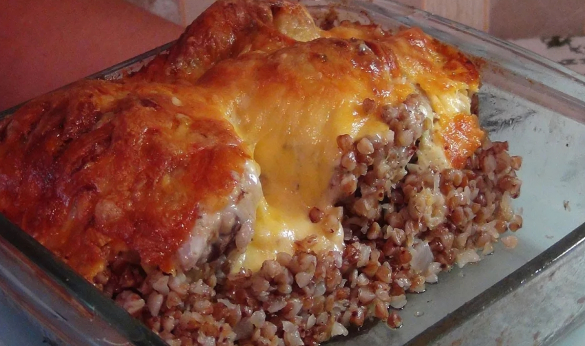 - Поставить форму в духовку, нагретую до 180 градусов и готовить гречку с курицей 1ч. Приятного аппетита!