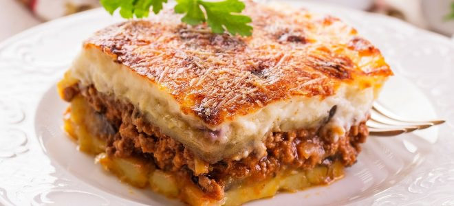 Продолжаем таким образом, пока ингредиенты не закончатся. Верхний слой – из картофеля и баклажанов, политых соусом. Накрываем мусаку крышкой и запекаем в течение 1,5 часов при температуре 180 ° C. Затем, достаем мусаку из духовки и даем отдохнуть 20-30 минут.