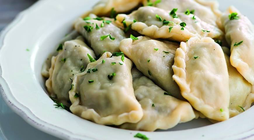 - Проварите вареники с мясом и капустой минут десять и подавайте к столу. Обязательно сдобрите их кусочком сливочного масла и рубленой зеленью. Приятного аппетита!