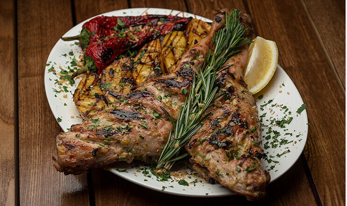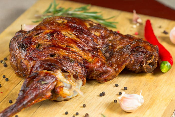 Нога барашка с розмарином, лимоном и оливковым маслом