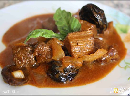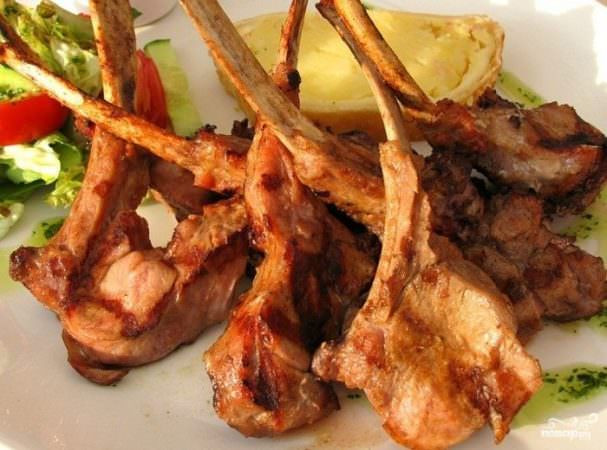 - В красивую тарелку для подачи укладываем несколько кусочков баранины на косточке и заливаем соусом. Мясо подается в горячем виде вместе с гарниром.