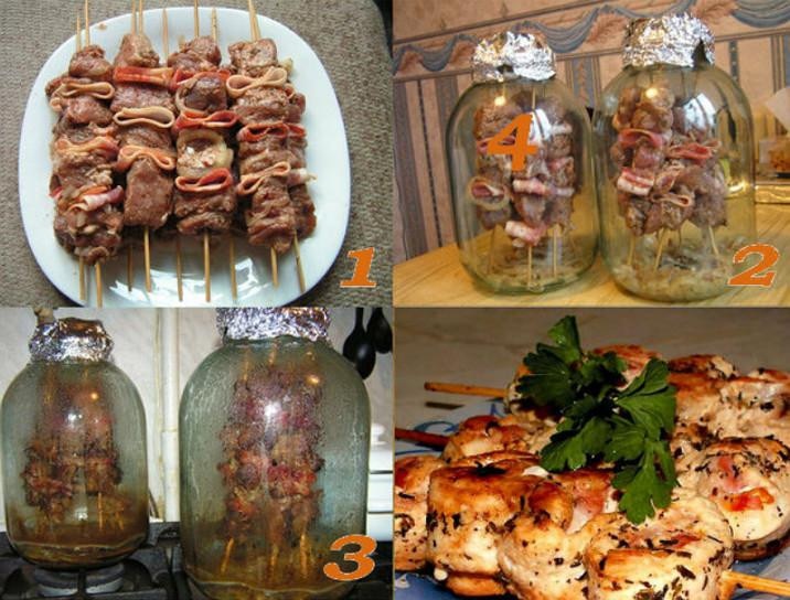 - Поставить шашлык в банке в холодную духовку и запекать 50 минут при температуре 230 градусов.