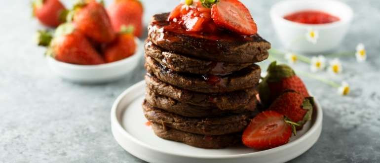 Вкусные шоколадные панкейки на кефире с какао – сладкие, пышные, с ароматом шоколада блинчики. Перед таким лакомством невозможно удержаться. Лучшим дополнением к ним станет мед или традиционный для панкейков клиновый сироп. И кулинарный шедевр готов к столу!Ингредиенты: