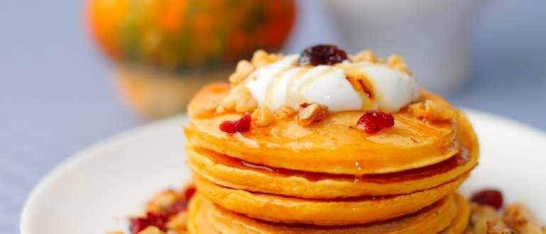 Тыквенные панкейки на кефире – это очень аппетитные блинчики, которые разнообразят ваше привычное меню. Чтобы вкус панкейков получился более насыщенным, пряным, обязательно добавьте в тесто ароматный мускатный орех и имбирь. И перед вашим шедевром никто не устоит!Ингредиенты: