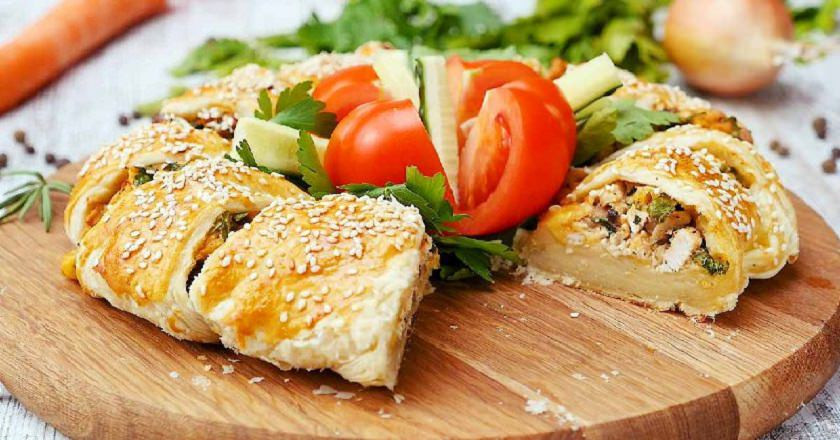 Куриный пирог из слоеного теста