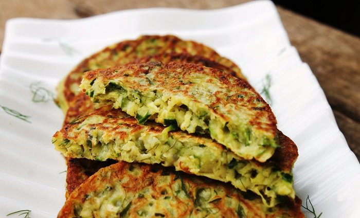 В миску налить кислое молоко, разбить яйцо, просеять муку, положить соль, соду и специи. Все перемешать. Кабачок почистить и натереть на крупной терке. Оставить в сторонке, чтобы вытекла вся жидкость. Порезать лук и укроп. Лук, укроп и кабачок добавить в тесто и перемешать.