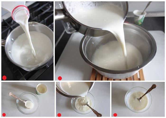 - К литру обычного молока можно добавить 100 грамм натурального живого йогурта и оставить бродить на 3-4 часа.
