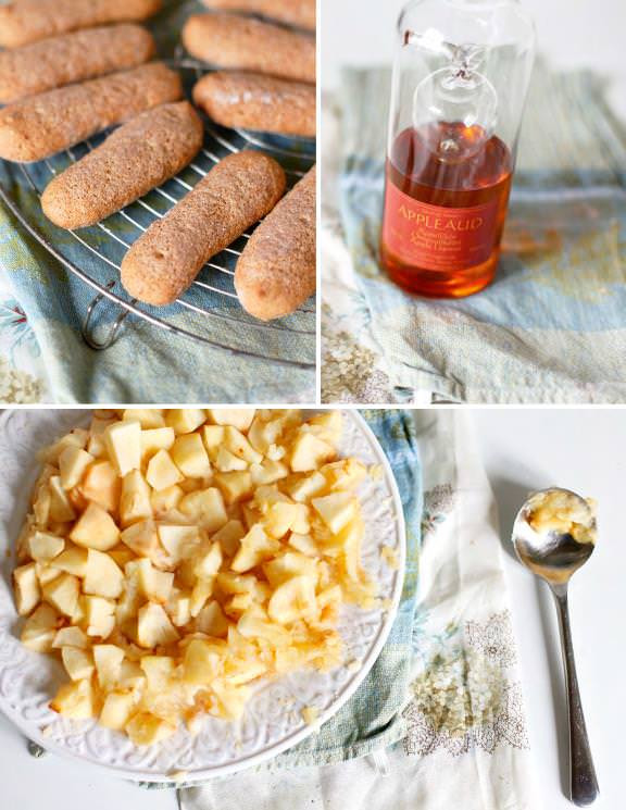 - Переложите тесто в кондитерский мешок, отсадите на противень палочки длиной около 10–12 см. Заготовки посыпьте сахарной пудрой с корицей 2 раза. Пеките при 200 °С 12 минут. Дайте остыть 5 минут и снимите с бумаги. Остудите. 3. Для сиропа расплавьте сахар с ложкой воды на сковороде и доведите его до коричневого цвета. Влейте немного кипятка, размешайте и добавьте молоко. Остудите. 4. Для начинки клюкву припустите до готовности. Яблоки почистите и выложите на противень или тарелку. Посыпьте сахаром, полейте яблочной водкой или кальвадосом. Пеките в СВЧ-печи 10 минут на максимальной мощности. Яблоки должны стать почти полностью мягкими. 5. Сборка. Форму смажьте маслом. Выложите форму бисквитами (дно и стенки), очень быстро обмакивая их в сироп. 6. Подрежьте бисквиты, чтобы они были вровень с краем формы, а оставшиеся от обрезки кусочки перемешайте с яблоками. Выкладывайте в форму яблоки, иногда добавляя припущенную клюкву.