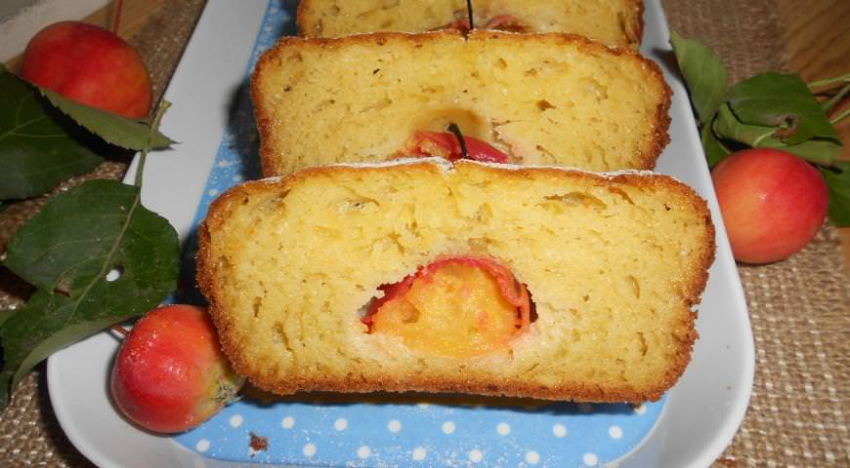 - Положить на корж дольки яблок, залить сиропом и готовить в том же режиме еще 10 мин.