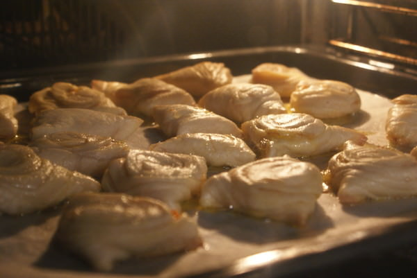 - Противень для выпечки застилают пергаментом, чтобы изделия не приставали к противню и можно было оперативно выложить следующую порцию для выпекания.