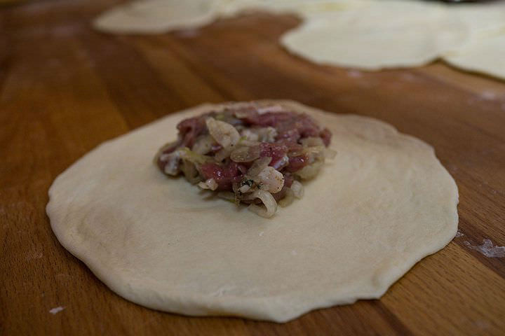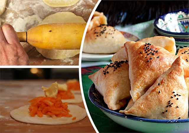 Одно бесспорно — это использование в начинке большого количества лука, рубленого мяса или овощей, приправ, курдючного жира. Состав для начинок крошат ножом, а не перемалывают в мясорубке. Тесто используют только на пресной основе, исключают сдобу, лучшим примером являются пирожки из слоеного.
