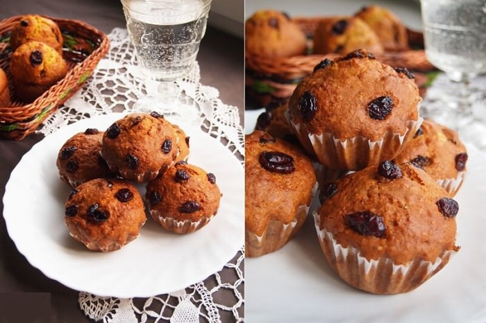 - Можете приготовить не обычные кексы с изюмом, а маффины. По большому счету ингредиенты нужны все те же, но на то же количество муки, что нужно для приготовления кексов, яиц, сахара и масло кладется в три раза меньше! По этой причине маффины с изюмом можно употреблять без страха для фигуры.