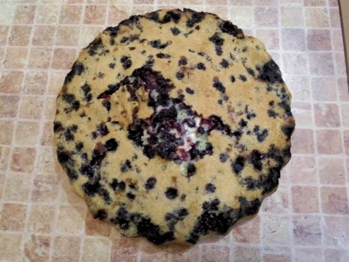 Начинаем приготовление с того, что хорошо взбиваем яйца. Не переставая взбивать, всыпаем понемногу сахар. Когда сахар растворится, так же, понемногу добавляем муку. И в конце — соду, гашенную уксусом. Когда тесто для бисквита будет готово, быстро всыпаем чернику, перемешиваем, тут же выкладываем на подготовленное деко и отправляем в горячую духовку. Почему это важно сделать очень быстро? Потому что, если затянуть этот процесс, то черничный сок окрасит весь бисквит в синий цвет и готовая выпечка будет совсем не аппетитной.