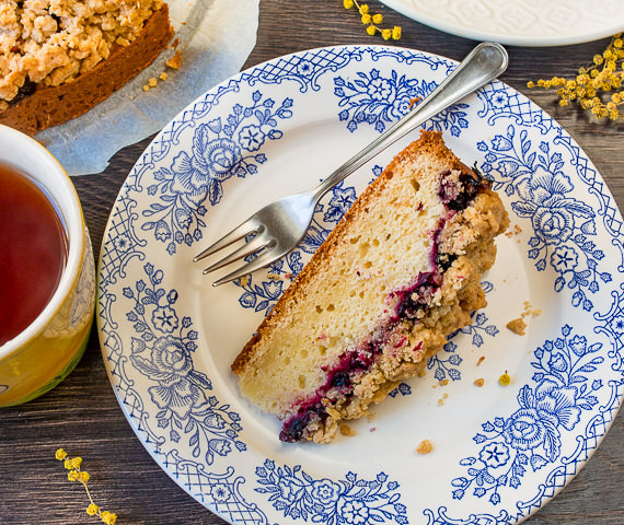 Готовим штрейзель. Кладем в миску все ингредиенты. И перетираем до получения крупной крошки. Ставим в холодильник. Готовим тесто. Масло взбиваем с сахаром и творогом до получения кремообразной массы. По одному добавляем яйца, хорошо взбивая после каждого. Добавляем просеянную с содой, солью и разрыхлителем муку, а также листики тимьяна, замешиваем тесто.