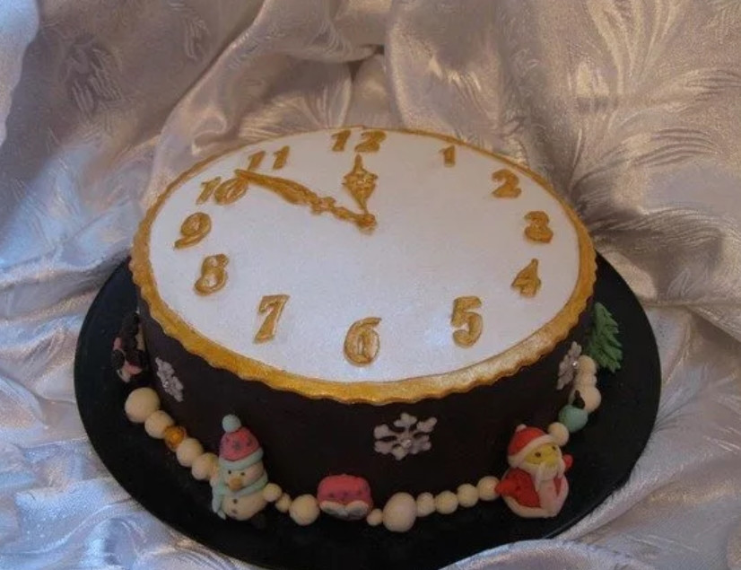 - Готовый торт Новогодние часы отправляйте в холодильник для застывания крема. Приятного аппетита!