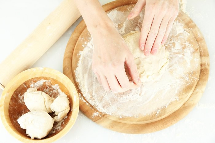 - Имейте в виду, что мука бывает разной. Поэтому нужно быть готовым добавить в тесто немного муки, если оно не желает вымешиваться и отлипать от рук. Или же наоборот, нужно будет добавить жидкость, если тесто получается слишком твердым.