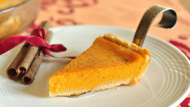 Американский тыквенный пирог, рецепт которого описан выше, имеет свои особенности. Если начинка получилась жидковатой, то добавляется 1 ст. л. крахмала. Но тогда перед подачей пирога на стол он должен полностью остыть. Вместо крахмала используется манка (1 ст. л.). В этом случае пирог режется еще горячим.