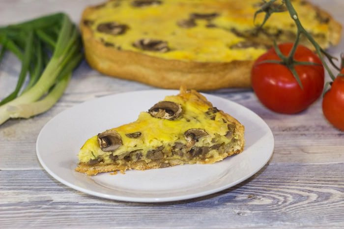 Песочный пирог с грибами и сыром