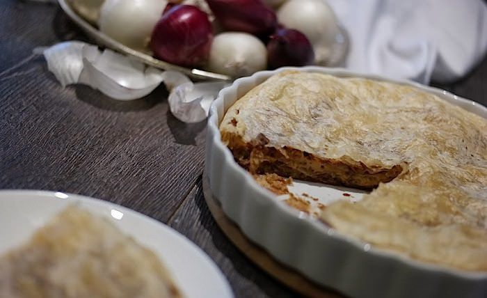 Луковый пирог с грибами