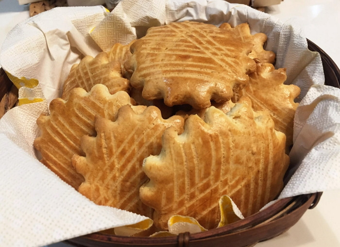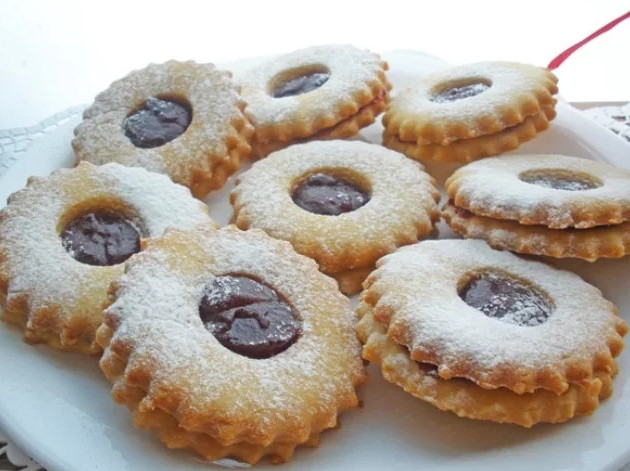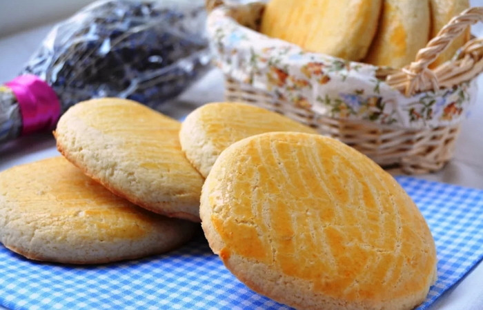 - Перекладываем на противень, застреленный бумагой и смазываем остатком яйца. Выпекаем минут 13-15 до золотистого цвета. Готовые коржики немного остудить, и можно подавать к столу.