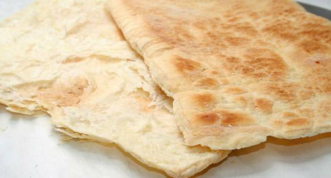Сформовать тесто в виде шара. Сделать крестообразный надрез. Раскатать в стороны. Толщина теста в центре — 20 мм, по краям — 15–17 мм (должен получиться пласт крестообразной формы с четырьмя овальными концами). Подпылить тесто мукой, положить в середину масло. Свернуть в виде конверта.