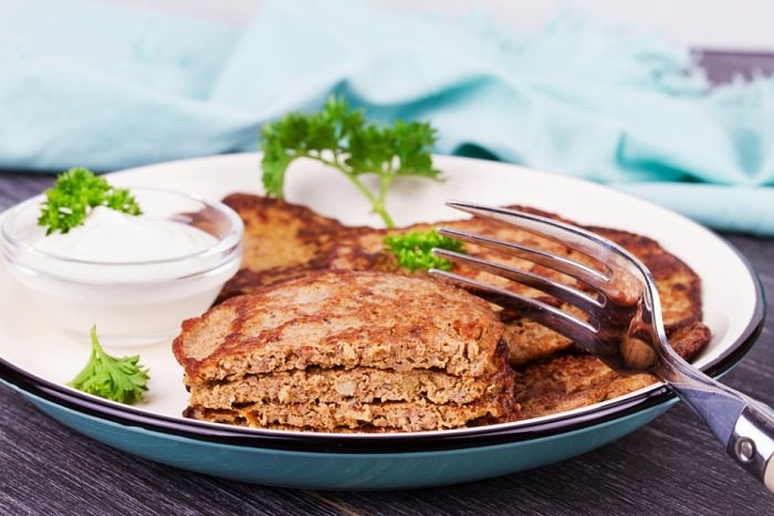 Печеночные оладьи из говяжьей печени с овсяными хлопьями
