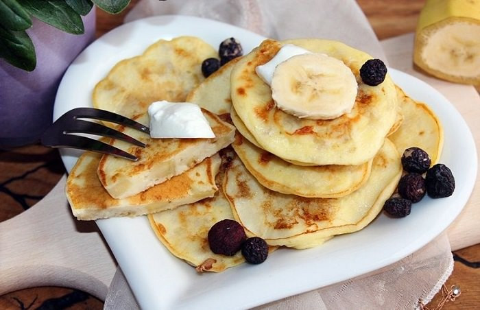 Оладьи с бананом на фруктовом йогурте