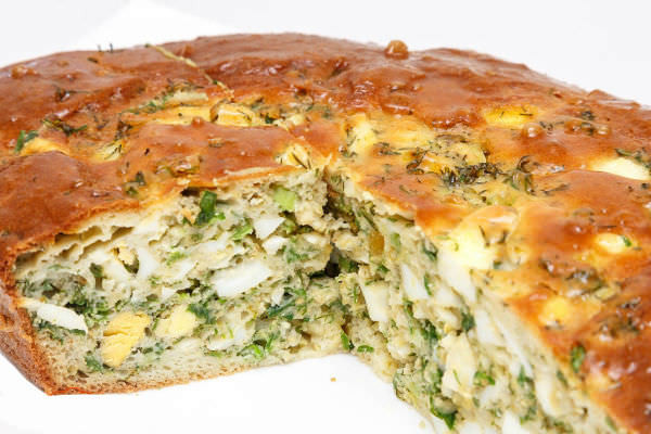 - Сверху пирог можно украсить мелко порезанными петрушкой, укропом или базиликом.